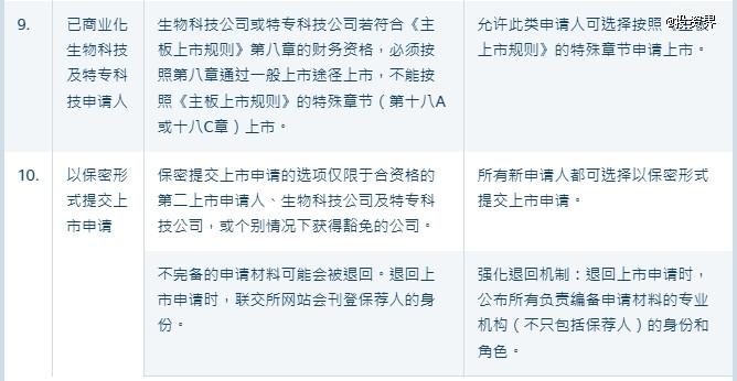 现行规定中,不完备的申请材料可能会被退回。退回上市申请时,联交所网站会刊登保荐人的身份。最新建议则是,强化退回机制:退回上市申请时,公布所有负责编备申请材料的专业机构(不只包括保荐人)的身份和角色。
