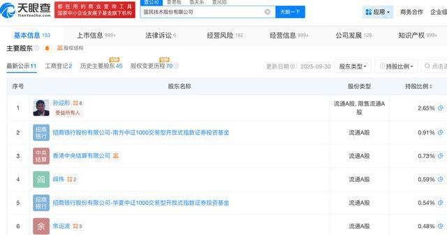 据贝多商业&贝多财经了解,国民技术是一家A股上市公司。天眼查App信息显示,该公司于2010年4月30日在深圳证券交易所创业板上市。目前,该公司的注册资本约为5.8亿元,法定代表人为孙迎彤,主要股东包括孙迎彤、阎伟等。